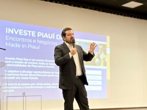 Victor Hugo de Almeida, presidente da Investe Piauí, em explanação durante o Seminário. Foto: Divulgação