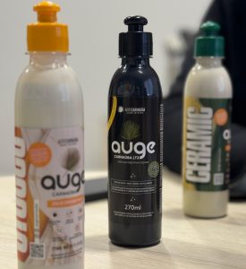 Conquistas e metas O CEO da Auge conta como tudo vem se expandindo desde janeiro deste ano. Para ele, 2024 está sendo um novo momento para a empresa, que conta com 12 colaboradores contratados diretamente e diversos outros indiretamente. “Conseguimos abrir a empresa em Portugal e nos Estados Unidos. A gente envia do Piauí ou de lá pra qualquer lugar do mundo. Nós temos laboratório funcionando, ainda de forma tímida, mas já temos”. Luciano explica que hoje o trabalho está focado na solidificação da imagem de alta qualidade da marca, para que chegue a ser referência no mercado internacional. “Nos segmentos onde a Auge está, ela é obrigada a ser a melhor, eu costumo dizer isso. É um comprometimento meu, porque me vejo obrigado a ser referência, em qualquer segmento que seja. É o nosso grande projeto. Eu quero que a Auge seja referência no mundo em ceras”. De acordo com o empresário, até o final do ano, a meta é atingir R$ 1 milhão em vendas nesse pós investimento, tanto nacional como internacionalmente. “A gente não tinha quase nem faturamento em exportações. Já passamos de R$ 500 mil em vendas diretas, mas agora é que vão começar os pedidos maiores. Hoje mesmo eu estou mandando para o Canadá e amanhã para Hong Kong. E nós ganhamos o prêmio mundial na Tunísia, de efeito mármore”, salienta. A cera da carnaúba A cera da carnaúba, de acordo com Luciano, é conhecida como rainha das ceras ou o auge das ceras. Ele afirma que ainda não se descobriu uma cera de origem vegetal que a supere em qualidade. Extraída do pó contido na superfície da folha da planta, a cera é utilizada para lustração de móveis, pisos e madeiras. Também serve para dar brilho à pintura de carro e, como oferece proteção contra raios ultravioleta (UV), ajuda a prevenir o desbotamento. Pode ser usada também para proteção em couros. A partir do pó, obtém-se também óleos finos, produtos medicinais, cosméticos, plásticos, papel carbono, tintas, vernizes, lubrificantes, impermeabilizantes, e até chips e códigos de barra, portanto é utilizada em escala industrial.