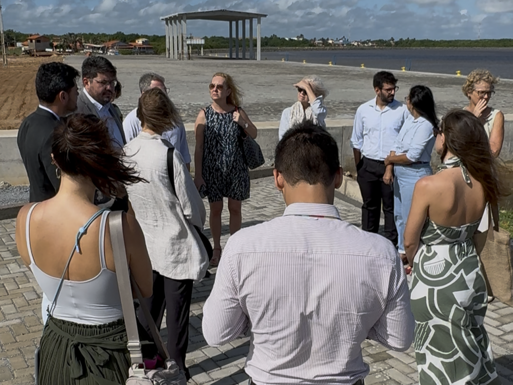 Uma comitiva com representantes de diversos países europeus, como Alemanha, Espanha, Lituânia e Polônia, que formam a Missão Europeia de Ciência e Tecnologia, esteve na manhã desta terça-feira (25) no complexo portuário da Companhia Porto Piauí, localizado em Luís Correia (PI). O presidente da Porto Piauí Raimundo Dias e a vice-presidente de Economia Pesqueira e Sustentabilidade Portuária Maria Cristina recepcionaram o grupo e apresentaram as instalações da companhia. Na ocasião, foram visitadas as obras já em fase de finalização do Terminal Pesqueiro e a sede administrativa, além de exibirem e debaterem um documento que condensa os valores, objetivos, cronograma e políticas que norteiam a construção da autoridade portuária do estado, recém-inaugurada pelo governador do Estado do Piauí Rafael Fonteles. “Viemos para conhecer um pouco do Porto Piauí, ver todas as fases do projeto e como isso vai favorecer tanto a economia local, também em parceria com a União Europeia. Fomos muito bem recebidos aqui pelo presidente Raimundo Dias e pela vice-presidente Cristina e hoje a gente sai daqui conhecendo um pouco mais do porto e dos potenciais para a região”, afirmou Dhallys Mota, oficial de Ciência, Tecnologia e Inovação da União Europeia no Brasil. Durante o encontro, membros da missão oficial questionaram as políticas de sustentabilidade colocadas em prática pelo projeto do Porto Piauí. “O fato do complexo portuário piauiense estar sendo construído dentro de uma Área de Proteção Ambiental (APA) torna a relação da Porto com o meio ambiente totalmente sustentável. Nós já surgimos entrando para o Pacto Global, o que possibilita a Porto Piauí o acesso a recursos, como cursos, workshops, e-books e toolkits, além de participar de eventos nacionais e internacionais que promovem o compartilhamento de boas práticas e a visibilidade de projetos inovadores no que diz respeito aos ODS”, respondeu o presidente Raimundo Dias às indagações feitas.