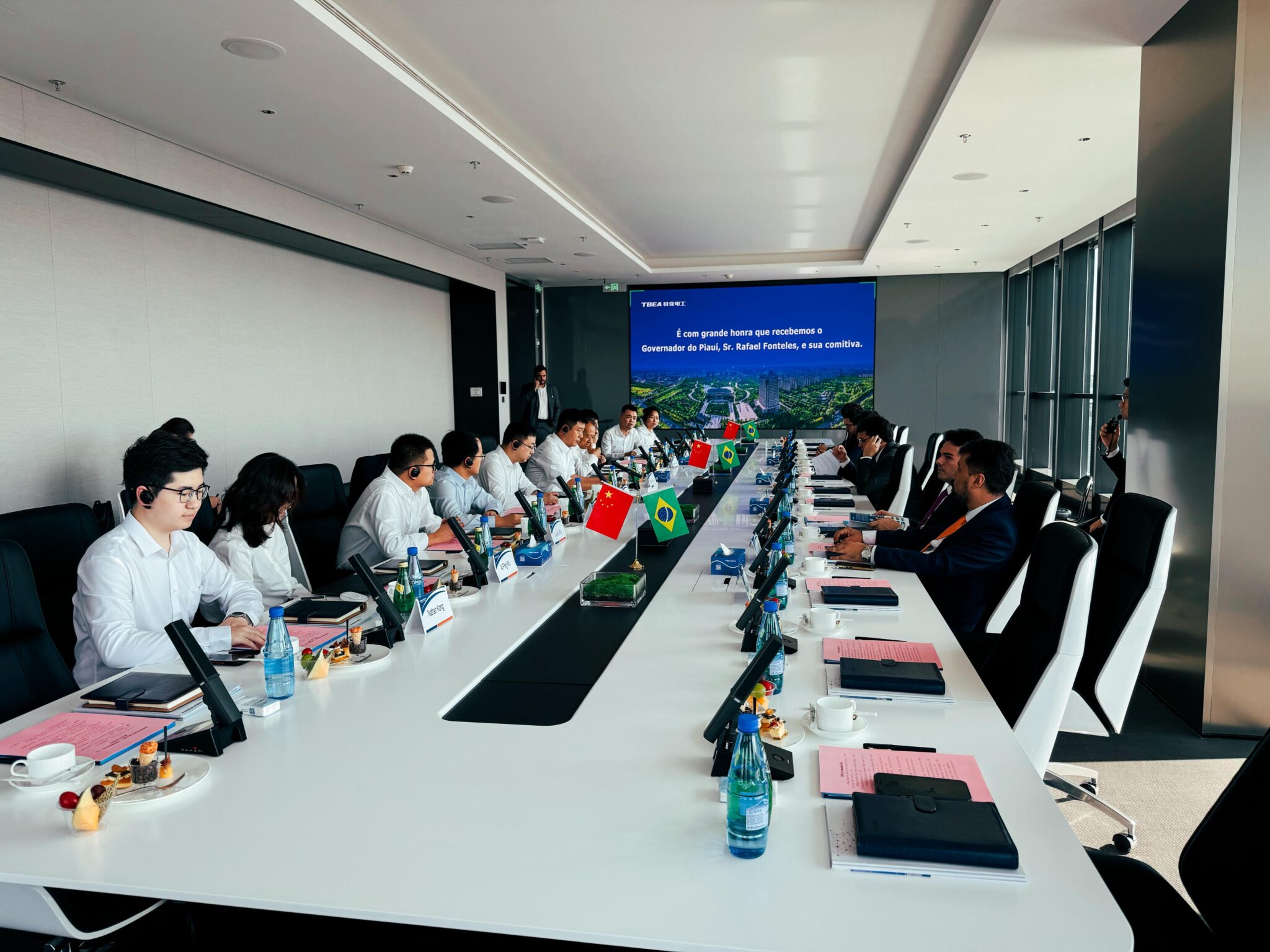 Reunião com executivos da empresa TBEA em Xangai (Foto: Juliana Oliveira) Diante dos montantes em negócios, dentre os principais produtos exportados destacam-se castanha de caju, soja e outros grãos, carne bovina, carne de frango e açúcar. Já no campo das importações, o Piauí avançou em negociações voltadas para a aquisição de fertilizantes, insumos para nutrição animal, exploração mineral, pivôs de irrigação e insumos de saúde. A missão também abriu espaço para a apresentação de projetos inovadores, que juntos somam R$ 200 milhões em investimentos potenciais. Entre eles estão iniciativas para aquisição de equipamentos provedores de internet, uma pomada para tratamento da diabetes e sistemas de armazenagem de energia, todos com foco em ampliar a inovação e a sustentabilidade no estado.
